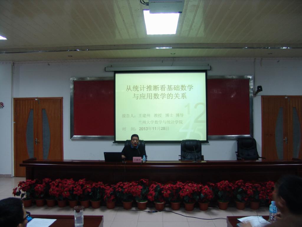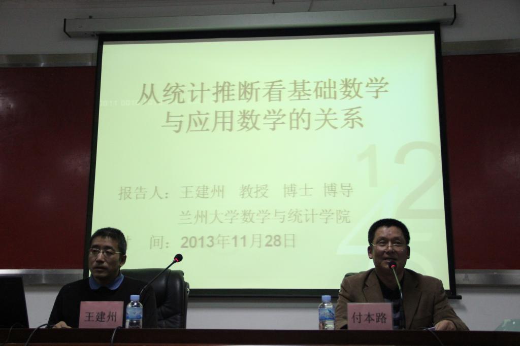 11月28日晚,学校第二会议室座无虚席,我院邀请兰州大学博士生导师王建州教授为我院学生做题为—《从统计推断看基础数学与应用数学的关系》的学术讲座。学院党委书记付本路主持了此次讲座。