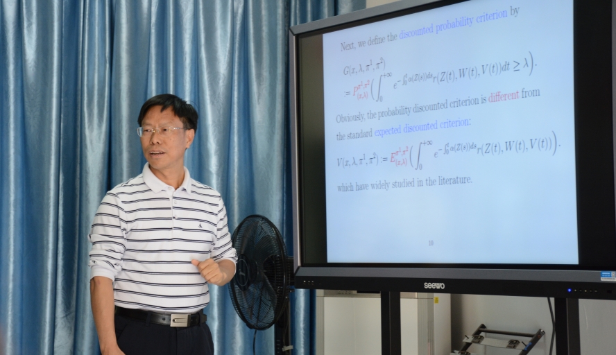 报告人简介:郭先平,男,博士,博士生导师,国家杰出青年科学基金获得者(2009), 1996年于中南大学获博士学位,2002于中山大学晋升为教授,2003年入选教育部优秀青年教师资助计划,2004年入选教育部新世纪优秀人才支持计划,2010年被评为珠江学者特聘教授,2015年获国务院政府特殊津贴。现任全国概率统计学会副理事长,担(曾)任国际(SCI)杂志 Advances in Applied Probability,Journal of Applied Probability,Science China Mathematics,Journal of Dynamics and Games,以及国内期刊《中国科学:数学》、《应用数学学报》、《应用概率统计》、等杂志编委。研究兴趣为马氏决策过程、随机博弈等。曾获得国家杰出青年科学基金、国家自然科学基金面上项目和重点项目多项。