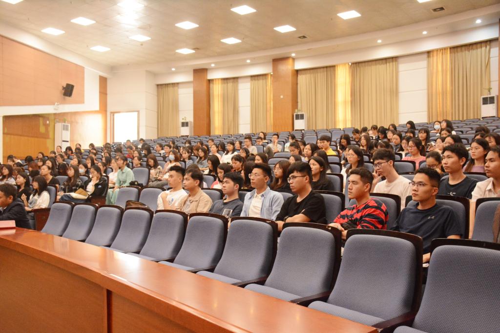 2021年4月21日下午我院于福慧图书馆报告厅举行了两场关于指导应聘中小学数学教师以及教师专业技能发展的讲座。参加此次讲座的有主讲人叶加坚主任与梁星梅副校长、我院吴晓副院长以及17、18级数学与应用数学的同学们。