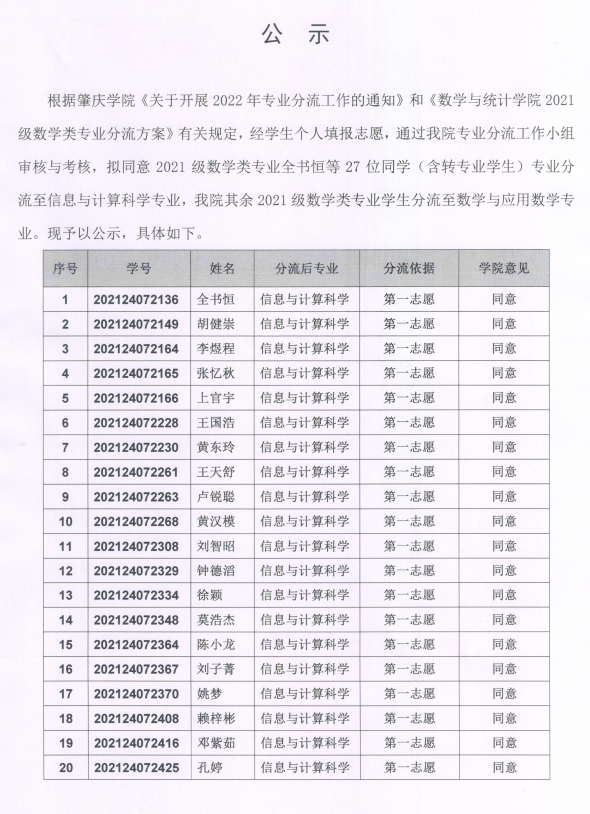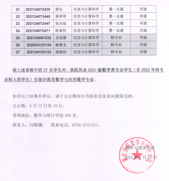yl23411永利集团2021级数学类专业分流结果公示