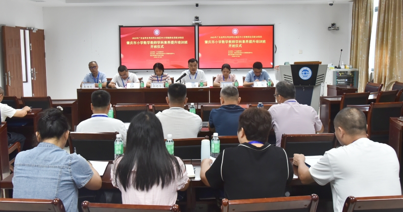 由我院责承办的广东省2025年粤东粤西粤北地区教师全员轮训-肇庆市封开县小学数学教师学科素养提升培训班于2025年7月19日上午隆重开班。yl23411永利集团党委书记李先强,党委副书记高洁云、副院长谷泽,肇庆市第十五小学校长郭巧华,培训班班主任王传利以及培训班全体学员50人参加了开班典礼,开班仪式由yl23411永利集团副院长程从华主持。