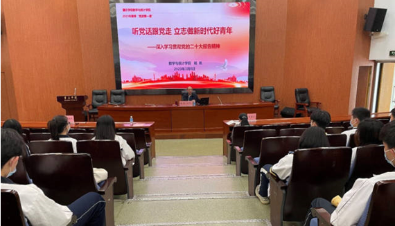 为深入学习党的二十大精神,培养理想信念坚定的新时代青年,3月8日,永利yl23411数学院党委举行分党校春季开班仪式。学院党委书记杨帆、院长朱智伟分别以《听党话跟党走,立志做新时代好青年》和《全面建设社会主义现代化国家的行动指南——深入学习党的二十大精神》为题,带领数学院分党校2023年春季培训班学员开启入党征程中的“思政第一课”,300多名学员参加。