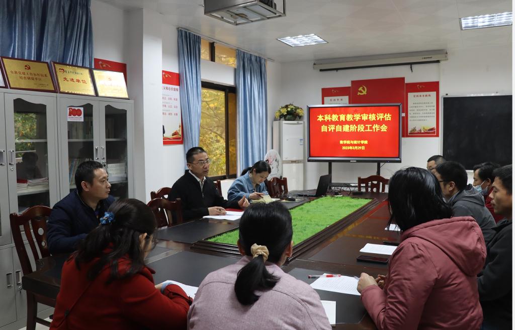 本网讯 为做好2023 年本科教育教学审核评估的自评自建工作,数学院于3月29日召开了审核评估自评自建工作会议。会议由朱智伟院长主持,教学副院长吴晓、党委副书记高洁云、各系(部)主任及教学秘书等人员参加。
