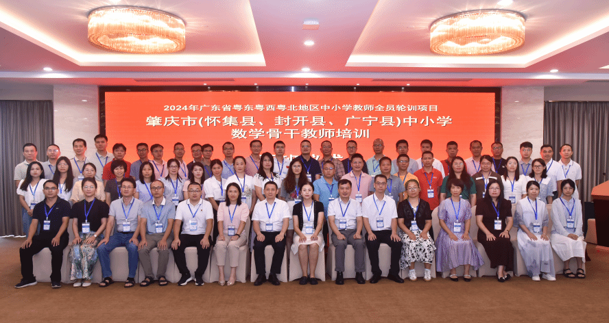 2024年广东省粤东粤西粤北地区中小学数学教师全员轮训项目,培训对象是来自肇庆市怀集县、广宁县、封开县各中小学,其中小学教师1个班、初中教师2个班、高中教师1个班,各班50人,学员共200人。本次培训采取集中讲授、跟岗学习、网络研修等方式进行,集中讲授和跟岗学习共12天,分两阶段进行。本次培训授课教师既有来自高校的高水平理论专家,也有具有丰富基础教育经验的教研工作者、一线教师。