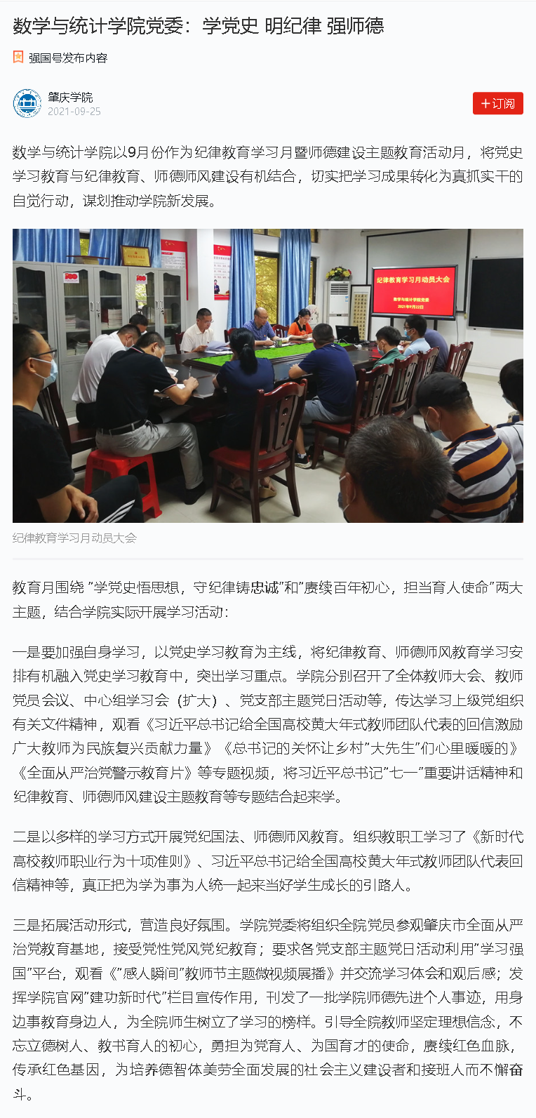 强国号|yl23411永利集团党委:学党史 明纪律 强师德