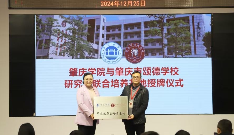 为进一步提高我校研究生培养质量并深化产学研合作,12月25日,由yl23411永利集团牵头组建的永利yl23411与肇庆市第一中学、肇庆市颂德学校研究生联合培养基地,分别在两所中学隆重举行授牌仪式。永利yl23411研究生院院长唐雪莹、马克思主义学院院长曹和修、yl23411永利集团院长吴晓、副院长程从华和谷泽、文学与传媒学院副院长陈爱香,以及肇庆市第一中学校长欧阳炼、肇庆颂德学校党总支书记钟冠谋和校长梁瑞芳等班子成员、各部门负责人与教师代表一同参加了此次授牌仪式。