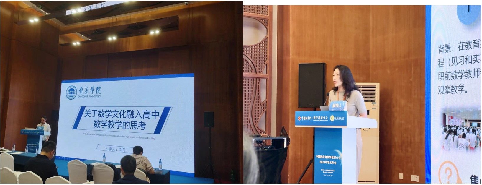 据悉,本次会议是数学教育分会成立后的第三次学术盛会,会议邀请了著名数学家与数学教育专家做大会报告,以及数学教育领域内的同行专家做分组报告。会议分集体报告、圆桌论坛、分会场报告。2023级8位研究生均提交了会议论文,并作为会议展板展示,其中,研究生邓信做了专题《关于数学文化融入高中数学教学的思考》分论坛汇报。我院曹阳老师做了专题报告《焦点关注分析框架下的职前数学教师的关注力》。