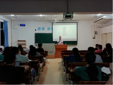 2019年4月28日,yl23411永利集团邀请广州罡得教育董事长唐刚,对16、17、18级师范专业及师范方向学生开展了“合理规划未来,走好大学之路”主题讲座,院党委副书记高洁云、辅导员曹阳老师参加讲座。