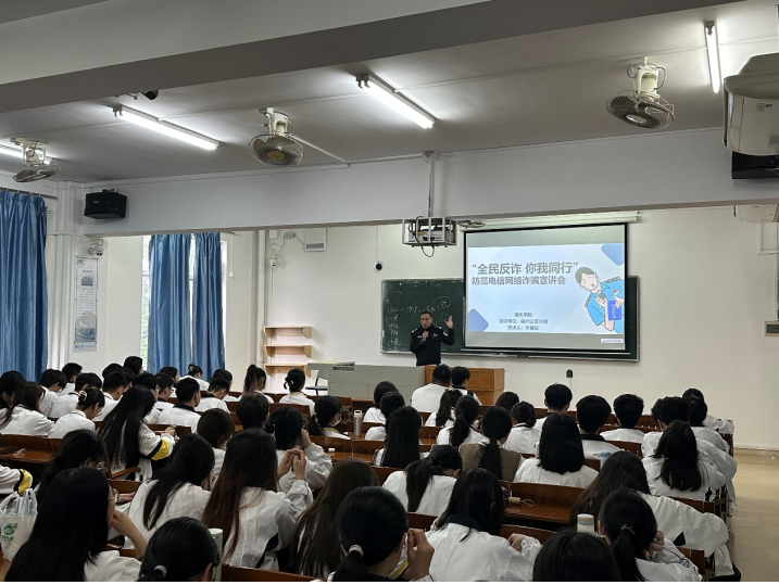 讲座围绕在校大学生的人身安全、消防安全和防诈骗、防传销、防“套路贷”等方面展开。结合大学生群体特点,重点介绍了刷单返利、“杀猪盘”、冒充电商物流客服、熟人、领导、“公检法”,虚假投资理财、虚假购物、非法校园贷和网络游戏虚假交易等典型电信网络诈骗方式。告诫同学们要牢固树立安全意识,不断提高自我保护意识和安全防范技能。