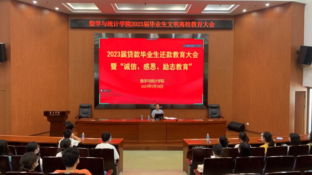 5月18日,我院在学术报告厅召开2023届贷款毕业生还款教育大会暨“诚信、感恩、励志教育”大会,会议由辅导员汤瑞雪老师主讲,全体2023届贷款毕业生参加。