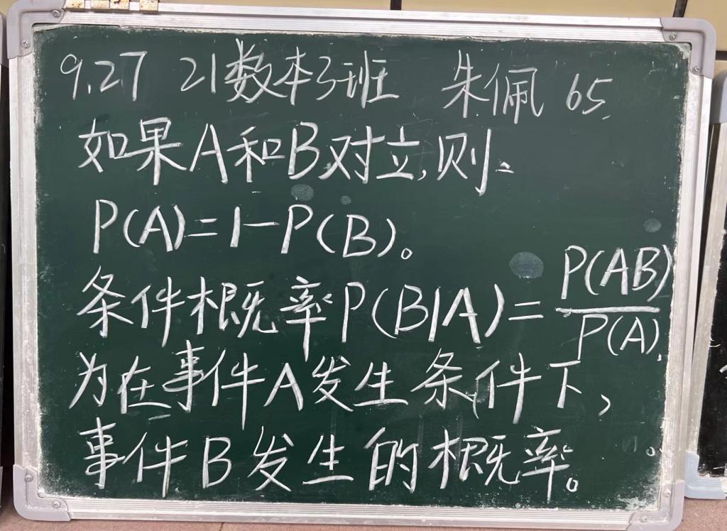 在书写粉笔字的过程中,师范生们既可以巩固相关的数学知识,也可以养成坚持不懈全面从严的好习惯。2021级数学与应用数学3班朱佩同学表示:“作为师范生的我们,一手好字可以提高个人修养,提升个人品位,对我们以后成为一名教师,写得一面工整、清秀的粉笔字,更是锦上添花。从现在便开始锻炼,对我们今后益处多多!”