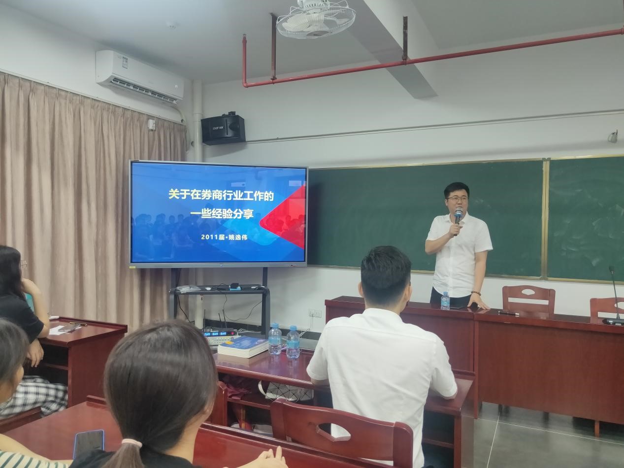 活动上,兼职教师梁超才、陈镔、姚逸伟三位优秀校友分别就考研与信息技术就业能力构建、券商行业经验分享等主题为学生开展了精彩的专题分享,激发了学生积极锚定就定方向的热情。
