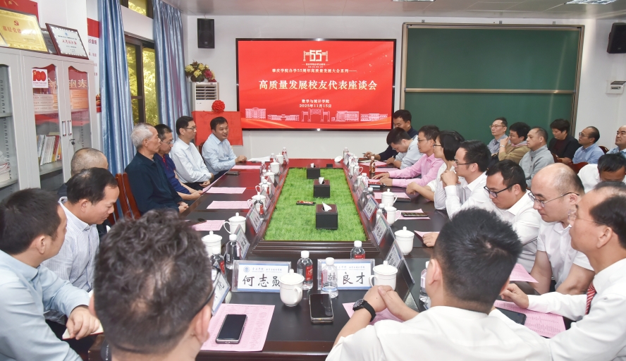 11月15日,学院在会议室召开办学55周年高质量发展校友代表座谈会,学院领导班子、在学院工作过的学校中层领导黄庆江、杨帆、朱智伟、盘炜生,校友代表黄鸿、罗红金、毛秋霞、黄赞、吴剑平、陆振均、孔爱群、莫杰昌、钟冠谋、黄剑华、韩良才、何志勋,以及各届校友代表40多人欢聚一堂,共忆求学岁月,共叙母校情谊,共谋学院发展。座谈会由学院党委书记李先强主持。