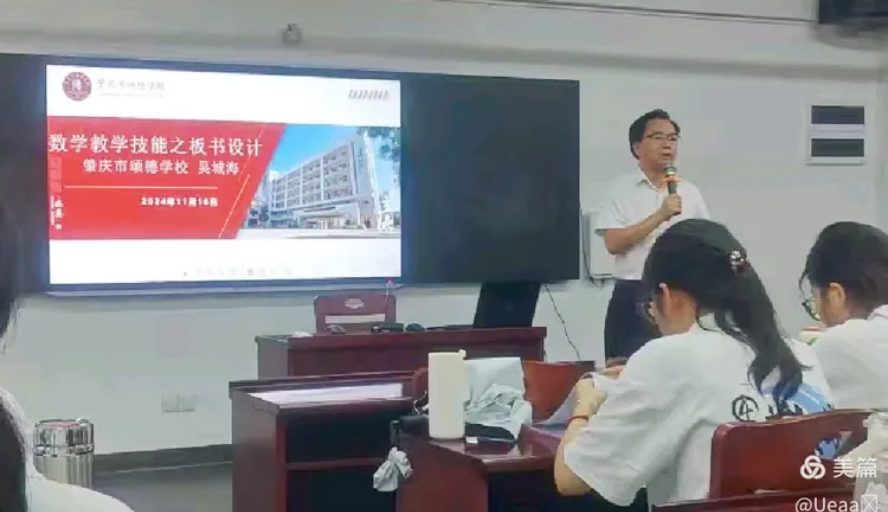 下午,肇庆市颂德学校的吴城海老师为数学卓越班带来的《数学教学技能之板书设计》课程,就像一把神奇的钥匙,开启了我们对数学教学深入理解的大门。这堂课重点围绕两个关键技能展开,那便是导入技能和板书技能。